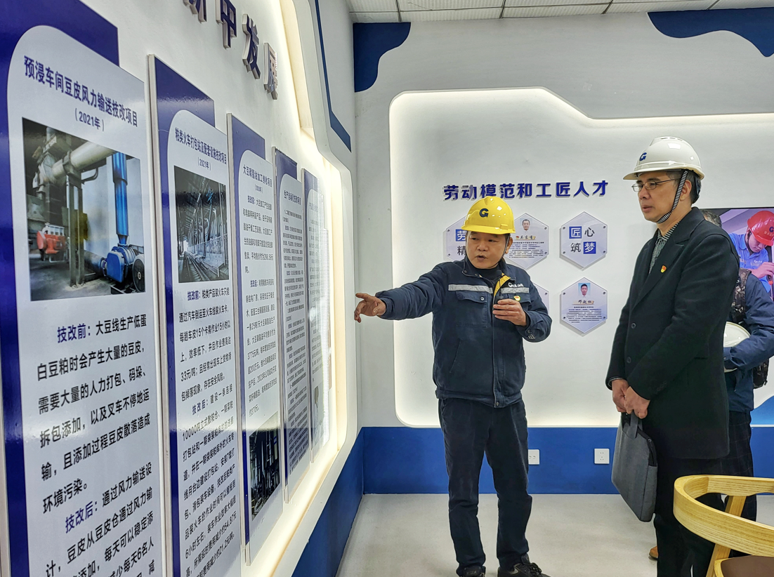 傳承工匠精神,助力公司發(fā)展。隨后一行人來(lái)到楓葉糧油勞模和工匠人才創(chuàng)新工作室參觀。楓葉糧油工程維修部副經(jīng)理吳東友向大家介紹北港工匠、油脂工匠情況,弘揚(yáng)工匠精神,把工匠精神融入生產(chǎn)制造和企業(yè)管理的每一個(gè)環(huán)節(jié)。